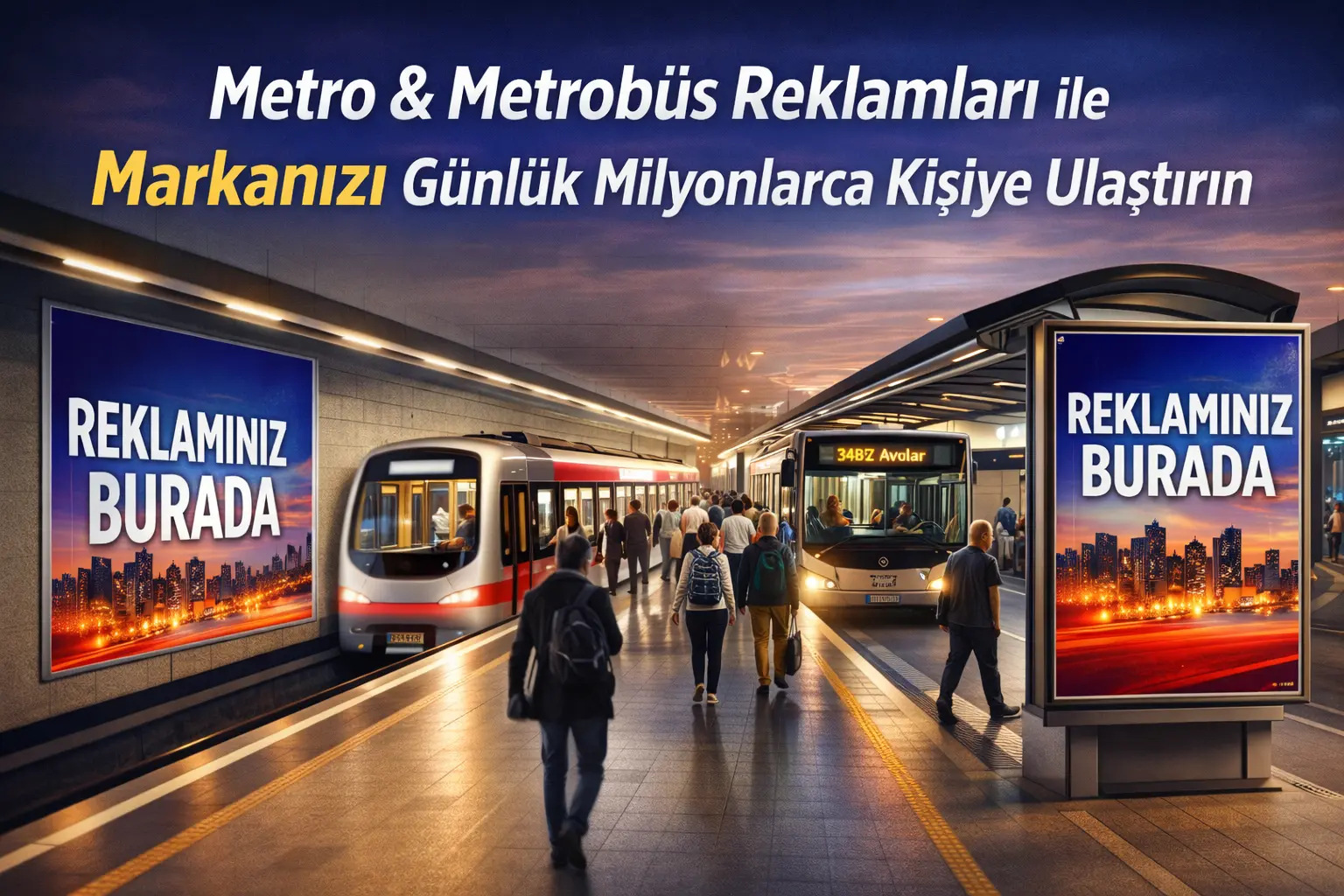 Metro ve metrobüs reklamları, şehir içi ulaşım ağlarının yoğun yolcu trafiğini kullanarak markalara güçlü bir görünürlük sağlayan açık hava reklam mecralarıdır. Büyük şehirlerde milyonlarca insan her gün metro ve metrobüs hatlarını kullanmaktadır. Bu nedenle metro reklamları, markaların geniş kitlelere ulaşmasını sağlayan en etkili outdoor reklam çözümlerinden biri olarak kabul edilir.